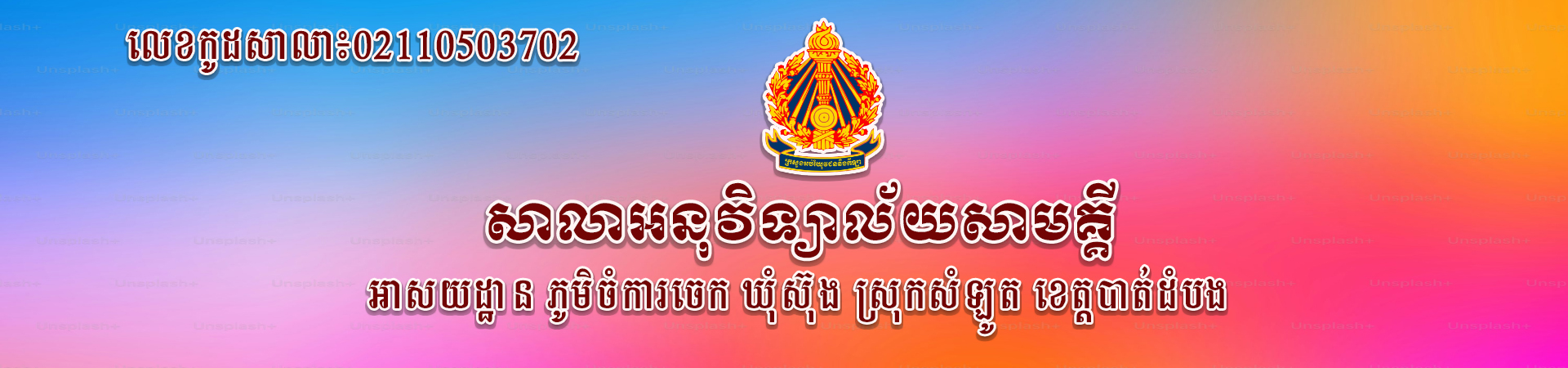 សាលាអនុវិទ្យាល័យសាមគ្គី មានទីតាំងស្ថិតនៅភូមិចំការចេក ឃុំស៊ុង ស្រុកសំឡូត ខេត្តបាត់ដំបង ស្ថិតតាមបណ្ដោយផ្លូវជាតិលេខ៥៧.៧ ចម្ងាយ១៥គីឡូម៉ែត្រពីទីរួមស្រុកសំឡូត។ លេខកូដសាលា 02110503702 វេបសាយព័ត៌មាន៖ http://smkschool.great-site.net